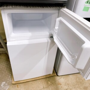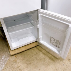 お品物は87Lタイプのコンパクト冷蔵庫で、単身世帯向けとして人気のモデルです。外装には正面上部にわずかな擦れ跡が見受けられましたが、大きなへこみや目立つ傷はありませんでした。庫内は棚板・ドアポケットともに割れや欠けはなく、冷蔵室・冷凍室ともに清潔感のある状態でした。動作確認でも冷却は問題なく、異音なども見られませんでした。