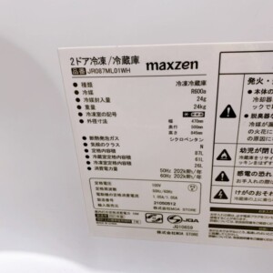 今回は東京都福生市にお住まいの30代男性・会社員・単身世帯・賃貸(アパート)のお客様より、maxzen 2ドア冷凍冷蔵庫 JR087ML01WH(2021年製)を出張買取にてご依頼いただきました。