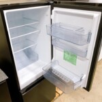 お品物は全定格内容積159L(冷蔵室114L/冷凍室45L)の2ドアタイプで、単身から二人暮らしにも対応できる容量帯のモデルです。外観はブラックカラーで、正面に光の加減で分かる程度の薄い擦れは見られましたが、目立つへこみや塗装剥がれはありません。庫内のガラス棚・ドアポケット・冷凍引き出しも破損や割れはなく、使用感はごくわずかでした。通電確認の結果、冷却機能も正常で異音も確認されませんでした。