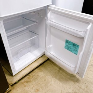 本製品は85Lのコンパクトな2ドア冷蔵庫で、ワンルームやセカンド冷蔵庫として需要のあるサイズ帯です。外観は目立つ傷やへこみはなく、全体的にきれいな印象でした。庫内については、棚板やドアポケットの破損はなく備品もすべて揃っていましたが、通常使用に伴う軽微な汚れが一部に見受けられる状態でした。動作確認では冷却機能に問題はなく、異音や冷え不足も確認されませんでした。