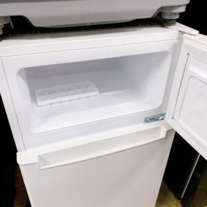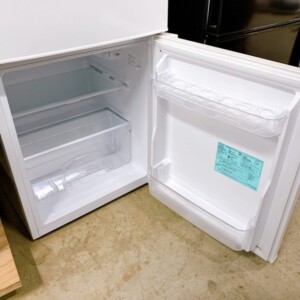 本製品は85Lのコンパクトな2ドアタイプで、ワンルームやセカンド冷蔵庫として需要の高いサイズです。外観は目立つ傷やへこみはなく、側面・天面ともに全体的にきれいな状態でした。庫内も棚板やドアポケットに割れや欠けはなく、におい移りも見られません。使用感も少なく、清潔感のある印象でした。付属品もすべて揃っており、動作確認では冷蔵・冷凍ともに問題なく作動しました。