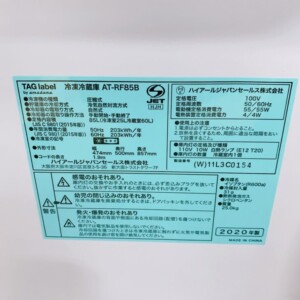 東京都豊島区駒込でTAG label 冷凍冷蔵庫 AT-RF85B(2020年製)を出張買取 使用感の少ない美品のため適正価格で査定しました
