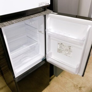 東京都世田谷区等々力でニトリ 2ドア冷蔵庫 NTR-106BK(2023年製)を出張買取 外観に傷ありのため状態を踏まえて査定しました