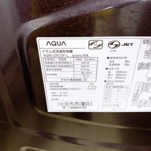 東京都北区へ出張買取 AQUA AQW-DX12P-L 2024年製 ドラム式洗濯乾燥機を査定しました