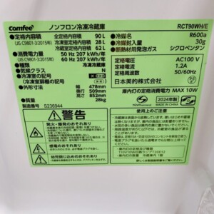 東京都新宿区神楽坂でcomfee ノンフロン冷凍冷蔵庫 RCT90WH/E(2024年製)を出張買取 外観に軽微な汚れありのため状態を踏まえて査定しました