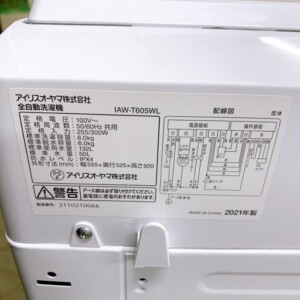 東京都中野区東中野でアイリスオーヤマ 全自動洗濯機 IAW-T605WL(2021年製)を出張買取 使用感少なくきれいな状態のため査定しました