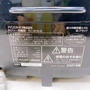 東京都江戸川区へ出張買取 アイリスオーヤマ RC-IK30-B 2021年製 IHジャー炊飯器 使用感ありを適正査定しました