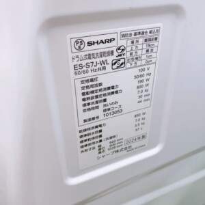 今回は東京都品川区にお住まいの40代女性(会社員・夫婦世帯・持ち家(マンション・分譲マンション))より、SHARP ドラム式電気洗濯乾燥機 ES-S7J-WL(2024年製)を出張買取にてご依頼いただきました。