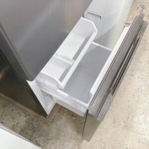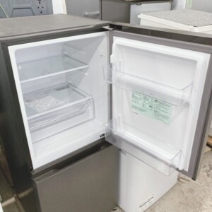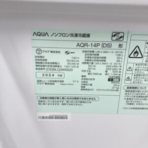 お買取した冷蔵庫AQR-14P(DS)は全定格内容積135L(冷蔵室85L/冷凍室50L)の2ドアタイプで一人暮らしに最適なコンパクトモデルです。外観はダークシルバーカラーで側面・前面ともに使用に伴う細かな擦れ傷等が数か所確認出来る時状態でしたが、天板には特別大きな汚れはなく比較的に良好なコンディションです。庫内は棚板やドアポケットの割れはなく動作確認でも冷却は正常で異音や温度異常もありません。2024年製と高年式である点も査定評価につながりました。