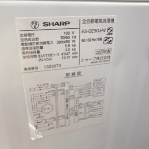 東京都港区浜松町へSHARP ES-GE5GJ-W 2023年製 全自動電気洗濯機 5.5kg 美品を出張買取いたしました