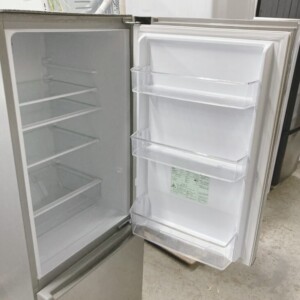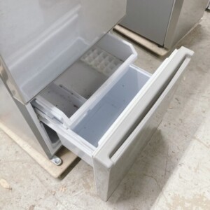 お引き取りしたAQR-20K(S)は、全定格内容積201L(冷蔵143L/冷凍58L)の2ドアタイプで、一人暮らしや二人暮らしに適したサイズ感のモデルです。外観はシルバーカラーで、正面ドア部分に細かな擦れや軽度のへこみが確認できました。庫内は棚板やドアポケットが揃っており割れはありません。冷凍室の引き出し内には若干の使用に伴う汚れが見られましたが、破損はなく製氷皿も付属していました。動作確認では冷却機能は正常で、異音や冷えムラもありませんでした。