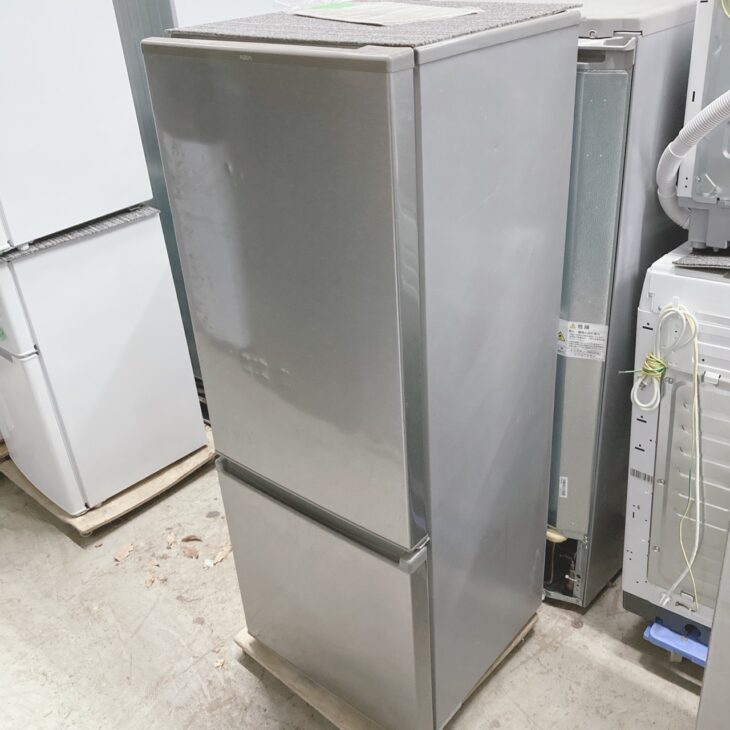 お引き取りしたAQR-20K(S)は、全定格内容積201L(冷蔵143L/冷凍58L)の2ドアタイプで、一人暮らしや二人暮らしに適したサイズ感のモデルです。外観はシルバーカラーで、正面ドア部分に細かな擦れや軽度のへこみが確認できました。庫内は棚板やドアポケットが揃っており割れはありません。冷凍室の引き出し内には若干の使用に伴う汚れが見られましたが、破損はなく製氷皿も付属していました。動作確認では冷却機能は正常で、異音や冷えムラもありませんでした。