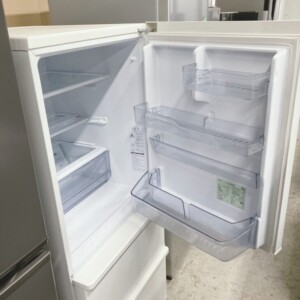 お引き取りしたAQR-27K(W)は、全定格内容積272L(冷蔵室222L/冷凍室50L)の3ドアタイプで、幅600mmの省スペース設計ながら収納力のある人気モデルです。庫内ラベルより2021年製であることを確認しました。外観はホワイトカラーで、目立つへこみや大きな傷は見受けられず、使用に伴うわずかな擦れ程度でした。庫内のガラス棚やドアポケット、野菜ケース、冷凍引き出し、製氷トレーも揃っており、割れや欠損はありません。内部も清潔感があり、冷却動作も確認済みで異音もなく良好な状態でした。