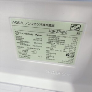 今回は北海道余市町にお住まいの30代女性・会社員(単身・賃貸マンション)より、AQUA ノンフロン冷凍冷蔵庫 AQR-27K(W)(2021年製)を出張買取にてご依頼いただきました。