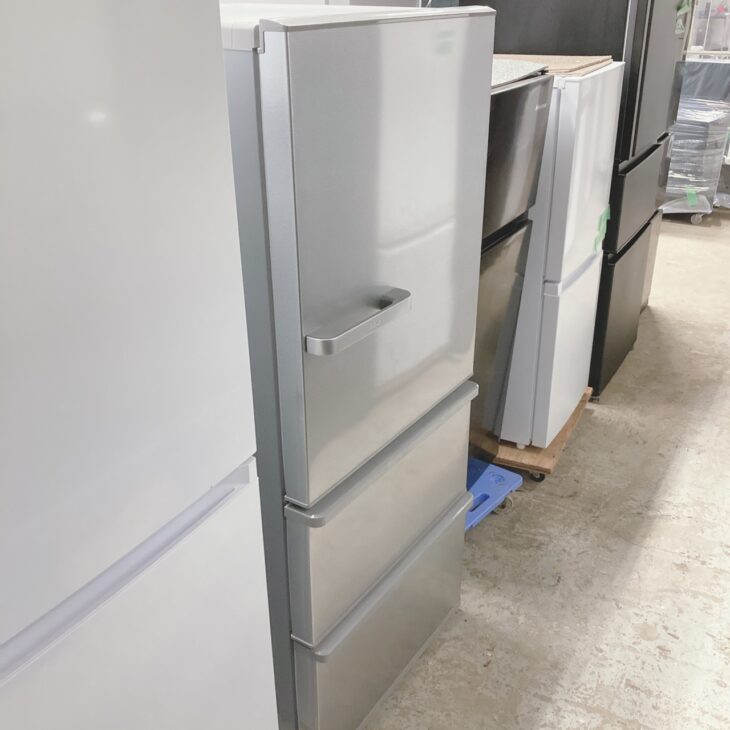 拝見したAQR-27M(S)は、シルバーカラーの外装に大きなキズやヘコミは見られず、正面パネルもきれいな状態でした。庫内のガラス棚やドアポケット、野菜ケース・冷凍引き出しもすべて揃っており、割れや欠損はありません。動作確認では冷蔵・冷凍ともに正常に冷却し、異音や過度な霜付きも見られませんでした。2022年製で年式も比較的新しく、272Lの3ドアタイプという点も評価につながりました。