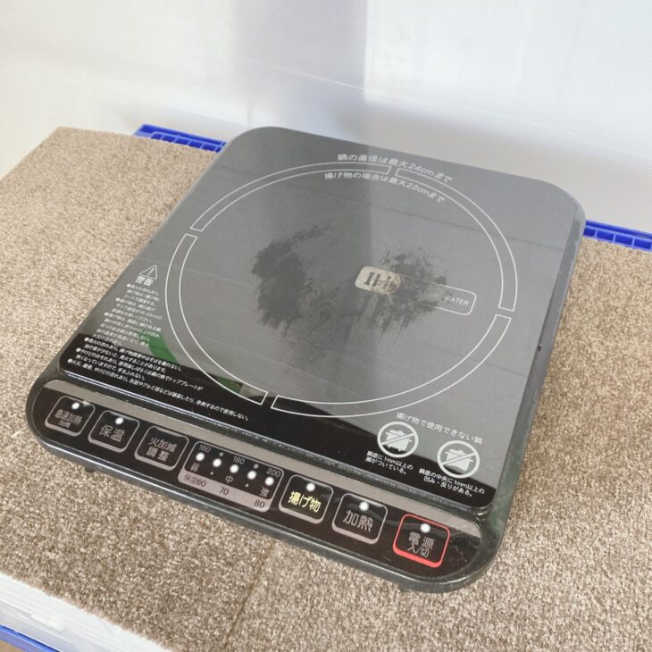 千葉県南房総市へ出張買取 山善 IH調理器 BEA-140(B) 2021年製 天板に焦げ跡ありも適正価格で査定しました