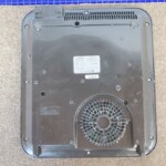 お預かりしたIH調理器は、天板中央部に吹きこぼれによる焦げ跡や白い焼き付き汚れが見受けられる状態でした。側面や操作パネル周辺にも使用に伴う細かな擦れがございます。裏面の通気口部分には若干のホコリの付着がありましたが、電源は正常に入り、加熱動作も問題なく確認できました。電源コードも付属しており、日常使用に支障のないコンディションでした。