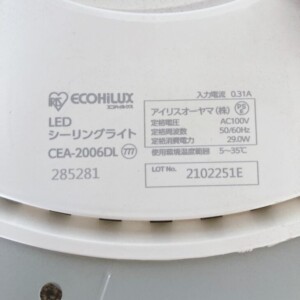 今回は埼玉県小川町にお住まいの40代男性・会社員・単身・賃貸(マンション)のお客様より、アイリスオーヤマ ECOHiLUX LEDシーリングライト CEA-2006DLの出張買取をご依頼いただきました。