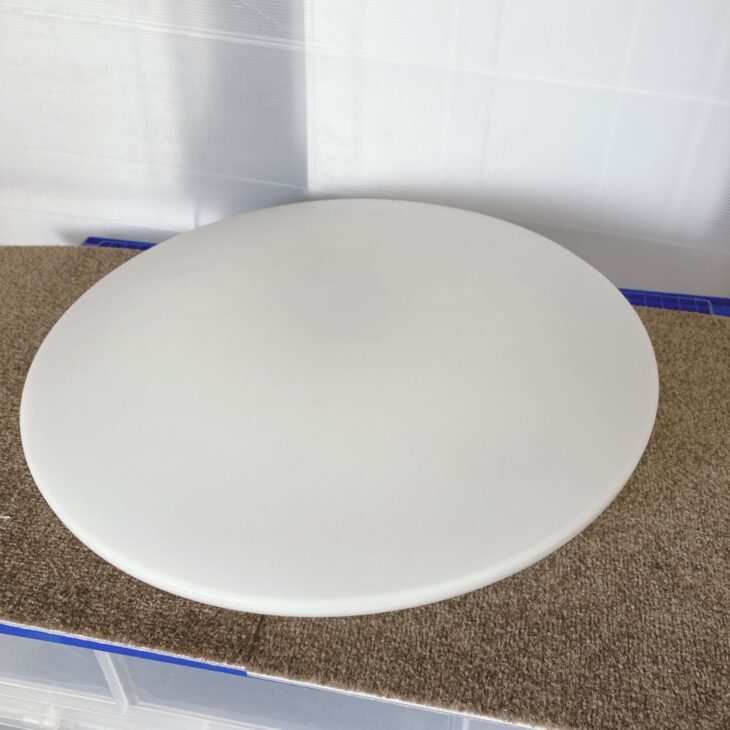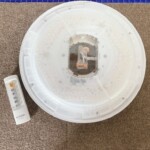 お引き取りしたのはアイリスオーヤマ製の6畳用LEDシーリングライトCEA-2006DLです。カバー表面に目立つ傷や割れは見られず、全体的にきれいな状態でした。裏面の本体部分も大きな変色や破損はなく、取り付け部のツメの欠けもありません。付属品として専用リモコン(CL-RL2)が付属しており、動作確認では点灯・調光・調色ともに問題なく作動しました。使用に伴うわずかなホコリの付着はありましたが、簡易清掃で十分対応可能なコンディションでした。