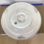お引き取りした商品は直径のある丸型タイプのLEDシーリングライトです。カバー表面には目立つ割れや大きな傷はなく、全体的に比較的きれいな状態でした。裏面には設置時の擦れや経年による軽微な汚れが見受けられましたが、固定用スポンジやアダプター部分も破損はありません。内部のLED基板にも変色や焦げ跡は確認されず、点灯確認でも問題なく作動しました。2015年製とやや年式は経過していますが、動作良好でまだ十分に使用可能な状態です。