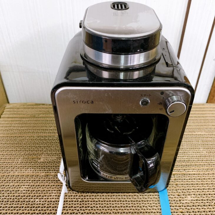 お引き取りした商品はsirocaの全自動コーヒーメーカー「SC-A211」で、2020年製のモデルでした。豆挽きからドリップまでを一台で行えるミル内蔵タイプの人気機種です。
