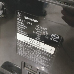 神奈川県箱根町でSHARP 液晶テレビ LC-22K3を出張買取 2010年製 使用感ありのため適正価格で査定しました