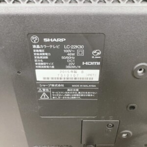 千葉県南房総市へ出張買取 SHARP 液晶カラーテレビ LC-22K30(2015年製)液晶画面に少々汚れありのため適正価格で査定しました