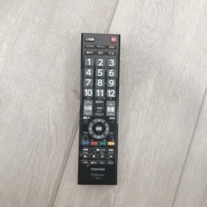 背面カバーやスタンド部分には、日常使用に伴う細かな擦れや使用感が見受けられましたが、割れや欠けなど大きな破損はありませんでした。付属品としてリモコンも揃っており、チャンネル操作や音量調整などの基本操作が問題なく行えることを確認しています。