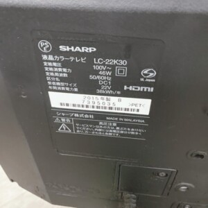 千葉県いすみ市へ出張買取 SHARP 液晶カラーテレビ LC-22K30(2015年製)画面全体に使用汚れありのため適正価格で査定しました