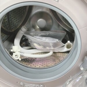 お預かりしたES-S7K-CRは、外装に使用に伴ううっすらとした汚れや拭き跡が見られるものの、目立つ大きな割れ・破損は確認できませんでした。ドア周辺やパッキン部も状態が良く、庫内はステンレス槽で清潔感のある印象です。写真からも確認できた通り、給水ホース・排水ホースなど付属品が揃っている点は評価ポイントでした。ドラム式は付属品欠品があると再販時に手配が必要になるため、揃っているだけで査定が安定しやすくなります。