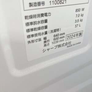 埼玉県宮代町へ出張買取 SHARP ドラム式洗濯乾燥機 ES-S7K-CR 2024年製 付属品ありで高価査定しました