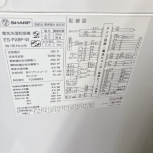 奈良県葛城市へ出張買取 SHARP 電気洗濯乾燥機 ES-PX8F-W 8kg 外観に軽い汚れありのため状態を踏まえて査定しました