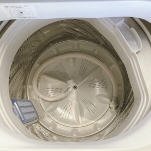 拝見したNA-F50B10は、外観に日常使用による軽度の擦れや使用感が見られるものの、大きな傷や破損はなく全体としてきれいな印象でした。操作パネルやフタ部分も問題なく開閉でき、使用に支障のあるダメージは確認されませんでした。洗濯槽内部もきれいな状態で、カビや汚れの蓄積も少なく、これまで丁寧に使用されていたことがうかがえます。さらに給水ホースも付属しており、基本的なパーツが揃っている状態でした。