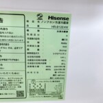 北海道室蘭市へ出張買取 Hisense ノンフロン冷凍冷蔵庫 HR-B12E4W 124L 使用感が少なく状態良好のため査定しました