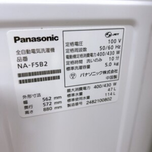 北海道千歳市へ出張買取 Panasonic 全自動電気洗濯機 NA-F5B2 5kg 2024年製 外観に使用感ありのため状態を踏まえて査定しました