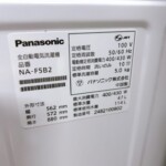 拝見したNA-F5B2は、外観に日常使用による全体的な使用感が見られましたが、大きな傷や目立つ汚れはなく、比較的良好な状態でした。天面や側面には軽い擦れがある程度で、本体の割れや凹みは確認されませんでした。洗濯槽内部もきれいで、カビや汚れの蓄積もほとんど見られず、丁寧に使用されていた様子がうかがえます。また給水ホースも付属しており、再販時に必要な基本的な備品も揃っている状態でした。