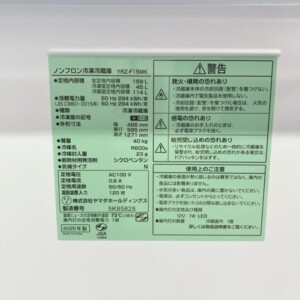 ヤマダ電機のREFAGEシリーズYRZ-F15MKは、159Lクラスのコンパクト冷蔵庫として単身世帯やセカンド冷蔵庫として一定の需要があります。さらに今回の製品は2025年製と非常に新しい年式であり、中古市場でも比較的流通価値が高い点が評価ポイントとなりました。