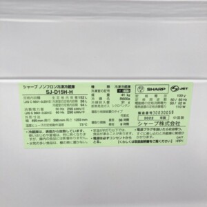 神奈川県松田町へ出張買取 SHARP 冷凍冷蔵庫 SJ-D15H-H 2022年製 外観に擦れ傷ありのため適正価格で査定しました