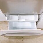 庫内の棚板やケースなどの主要パーツは揃っており、冷却動作や庫内灯などの基本機能も問題なく確認できました。庫内は軽い使用感があるものの、大きな汚れや破損はなく中古家電としては標準的なコンディションでした。