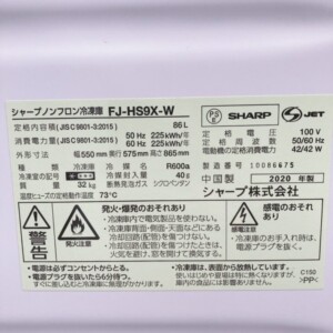 今回は埼玉県ときがわ町にお住まいの50代夫婦(自営業・夫婦世帯/持ち家(一戸建て))より、SHARP(シャープ)ノンフロン冷凍庫 FJ-HS9X-W(2020年製)を出張買取にてご依頼いただきました。