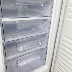 外装も比較的良好で、天面や前面に目立つ傷やへこみは確認されませんでした。日常使用による軽い擦れ程度にとどまり、2020年製としてはコンディションの良い個体です。冷凍庫は庫内の清潔さやパーツの状態が再販価格に大きく影響するため、今回のような状態は中古市場でも評価されやすいポイントになります。