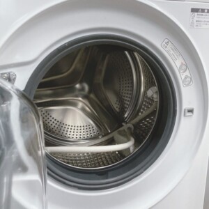 ドラム内部も非常に清潔で、ステンレスドラムに目立つ汚れやカビの付着は確認されませんでした。乾燥フィルターやゴムパッキン周辺の状態も良好で、洗濯・脱水・乾燥の動作確認でも問題はありません。中古市場でも再販しやすい状態と判断できました。