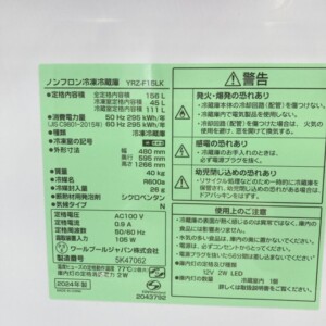 今回のREFAGE YRZ-F15LKは2024年製と新しく、156Lクラスの冷凍冷蔵庫は単身世帯向けとして中古市場でも安定した需要があります。特に今回の個体は庫内がきれいで付属品がすべて揃っている点が評価ポイントとなりました。