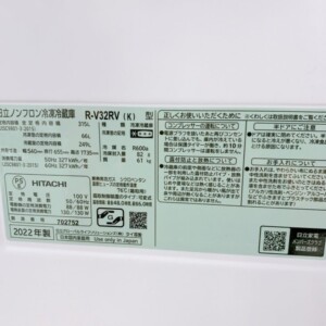 今回は東京都荒川区にお住まいの50代男性(自営業・夫婦世帯)より、日立 ノンフロン冷凍冷蔵庫 R-V32RV(K)(2022年製)を出張買取にてご依頼いただきました。容量は315Lクラスで、使いやすいサイズ感とシンプルなデザインで人気のあるモデルです。比較的新しい年式で中古市場でも需要が高いため、今回のご依頼でもしっかりと査定させていただきました。