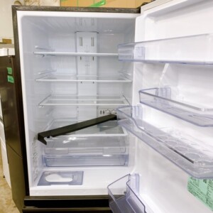 庫内を確認すると棚板・ケース・ドアポケットなどの付属パーツはすべて揃っており、内部も清潔な状態でした。食品汚れやにおい残りも少なく、冷却動作も問題ありません。中古品として再販する際にも評価しやすい状態でした。