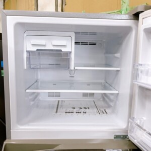 庫内も非常に清潔で、棚板やドアポケット、野菜ケースなどの付属パーツがすべて揃っている状態でした。食品汚れやにおい残りも少なく、冷却機能も正常に動作していることを確認しています。使用期間が短いこともあり、再販が可能な良好なコンディションでした。
