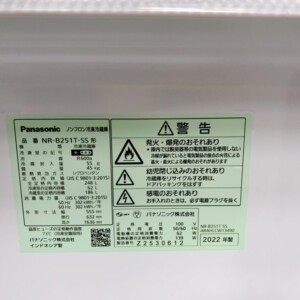 今回は茨城県常陸大宮市にお住まいの30代女性(主婦・夫婦世帯/持ち家(一戸建て))より、パナソニック ノンフロン冷凍冷蔵庫 NR-B251T-SS(2022年製)を出張買取にてご依頼いただきました。