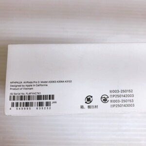 今回査定させていただいた商品はApple AirPods Pro 第3世代(型番 MFHP4J/A)です。写真の通り外箱・ケース・説明書が揃っている状態で、付属品が残っている点は査定のプラス要素となりました。