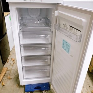 お品物は外観に目立つヘコミや大きなキズが見当たらず、扉の開閉も自然で、全体として丁寧に扱われている印象でした。庫内は引き出しケースや棚まわりが清潔感のある状態で、ニオイ移りも強くありません。霜付きが過度に進んだ形跡も少なく、冷凍庫として重要なポイントであるパッキンの密閉性や庫内パーツの欠品がないことも確認できました。取扱説明書類も揃っており、次の方へ引き継ぎやすい条件が整っていました。