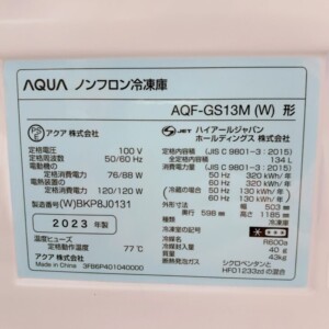 AQF-GS13M(W) 形は、まとまった冷凍容量を確保できるセカンド冷凍庫として需要があり、年式が新しめの個体は中古市場でも評価されやすい傾向があります。今回は2023年製である点に加え、庫内状態が良く、パーツ欠品がないこと、説明書類が揃っていることをプラス要素として反映しました。